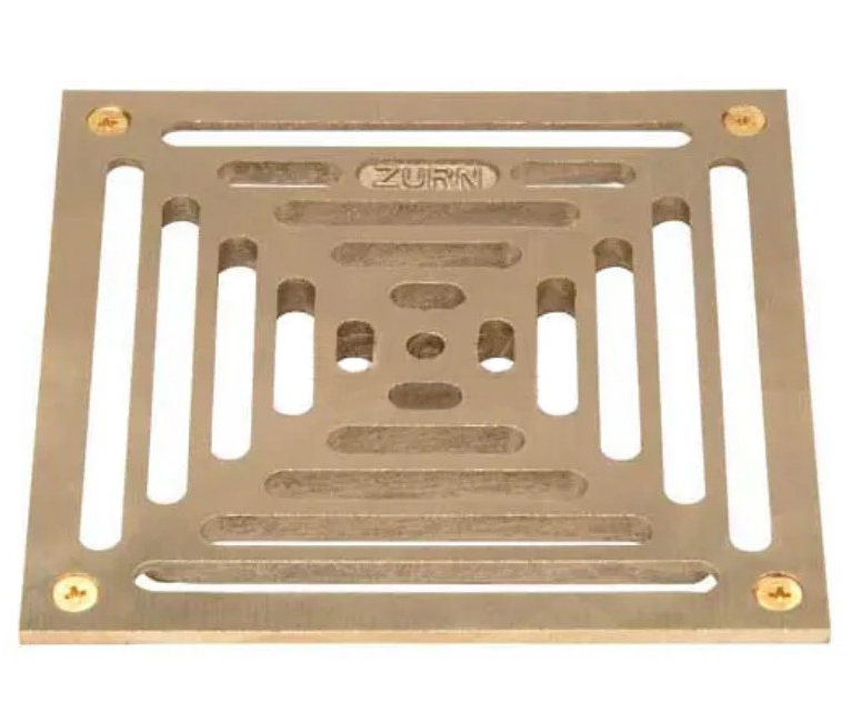 Designed to fit standard Zurn PB400-series drain bodies, this 8" square brass grate features a strong grid pattern that withstands frequent wash-downs, heavy foot traffic, and exposure to chemicals or cleaning agents. The included mounting screws ensure a secure, hassle-free installation.