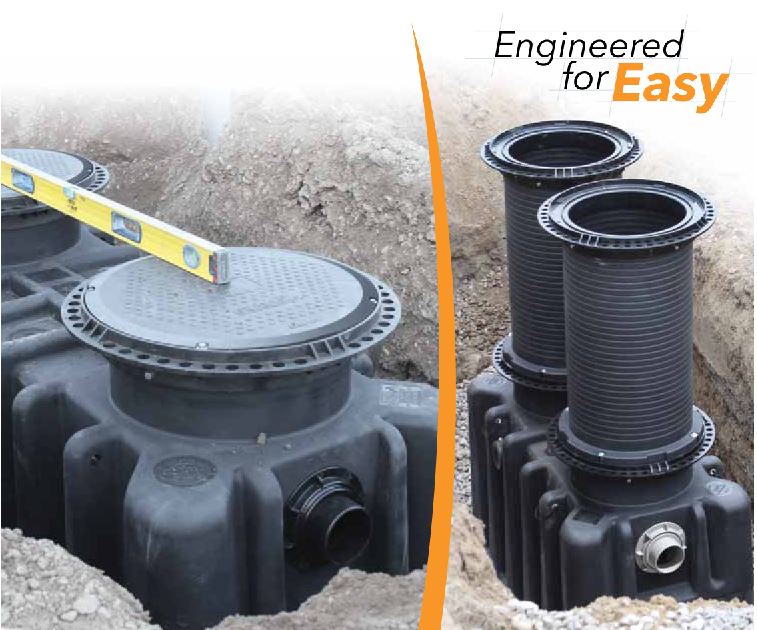 Our ‘cut to suit’ Extension Riser is supplied with an additional frame interfacing directly with the tank. The original cover is removed for installation and relocated to the top of the extension when ready to backfill. Extendable to maximum of 72" (top face of tank to grade) the air and water tight Extension Riser provide a fast and easy means to achieve a perfect finish at grade/floor level.